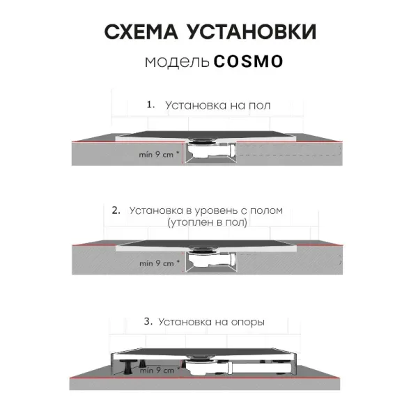 Душевые поддоны COSMO производятся на современном европейском оборудовании для европейского рынка. Контроль качества осуществляется на всех этапах производства. Нескользящая поверхность Antislip. Поверхность с имитацией сланца. Прочный (выдерживает вес свыше 300 кг). Высокая износостойкость. Стойкий к перепадам температур. Стойкий к воздействию химических веществ. Устойчивый к загрязнениям. Не меняет цвет от времени. Экологически нейтральный материал. Теплый на ощупь, приятный тактильный эффект. Хорошее шумопоглощение (в отличие от стали и акрила). Легко моется с использованием бытовых моющих средств. Возможность подрезки под индивидуальный размер. Гарантия 3 года.