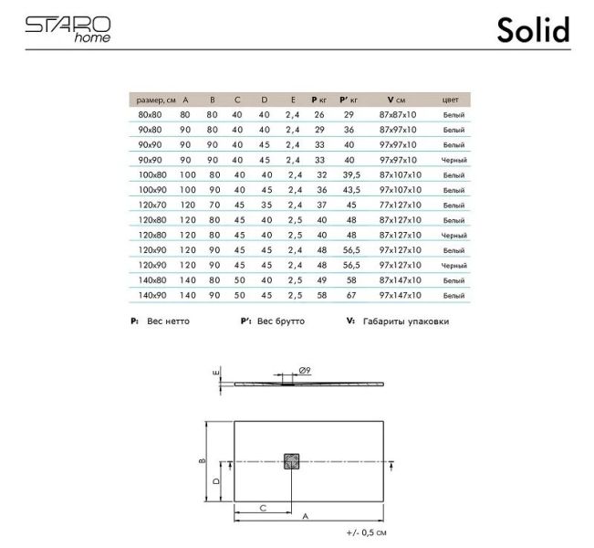 Стильный и надежный душевой поддон Starohome Solid 80×80