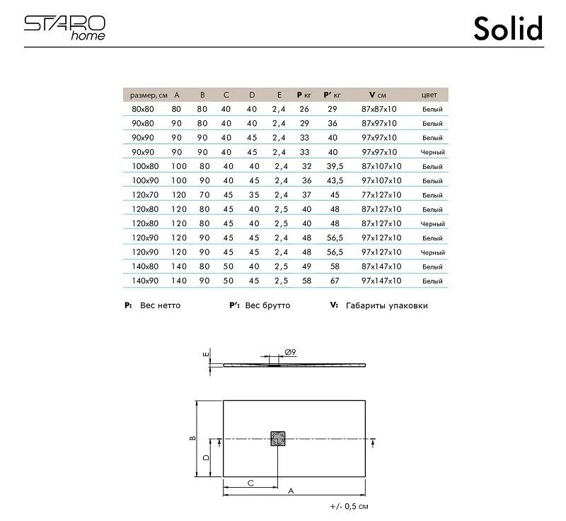 Душевой поддон Starohome Solid 80х80, литьевой мрамор, квадратный, цвет серый матовыйДушевой поддон Solid изготовлен из литиевого мрамора Sanydur® и представляет собой монолитный материал на 85% состоящий из мраморной крошки, минеральных пигментов и связывающего материала в виде полиэфирной смолы. Сверху материал покрывается гелевым слоем Gel Coat Покрытие Gel Coat - это прочный прозрачный, абсолютно непористый материал, защищающий материал поддона от загрязнений, перепада температур и УФ-излучения. Душевые поддоны Solid производятся на современном европейском оборудовании для европейского рынка. Контроль качества осуществляется на всех этапах производства.