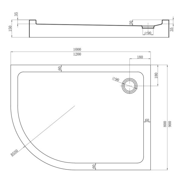 Душевой поддон Veconi Tezeo Acrylic TZ-55R, 1000x900x150, акрил, белый