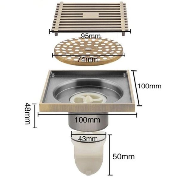 Трап для душа вертикальный Gappo G81004-4, размер 10 * 10 см, цвет бронза, изготовлен трап из нержавеющей стали.