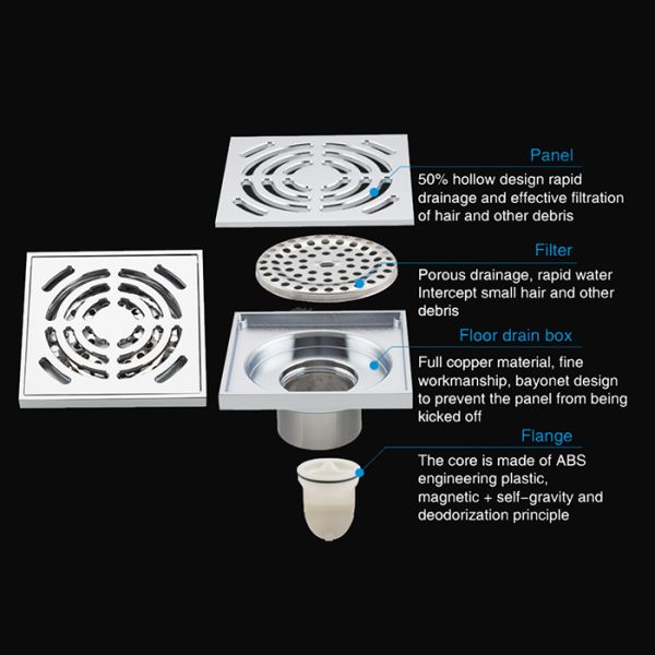 Трап для душа с вертикальным выпуском Gappo G81052, размер 10 * 10 см, цвет хром, изготовлен тра... Подробнее