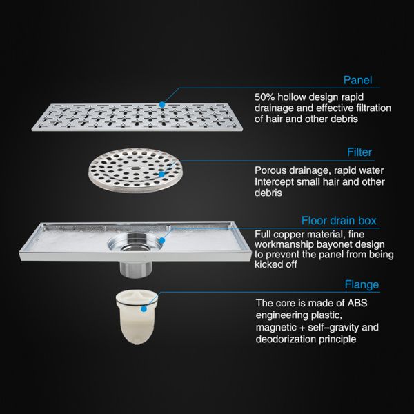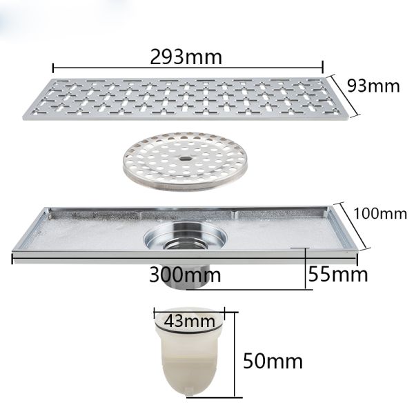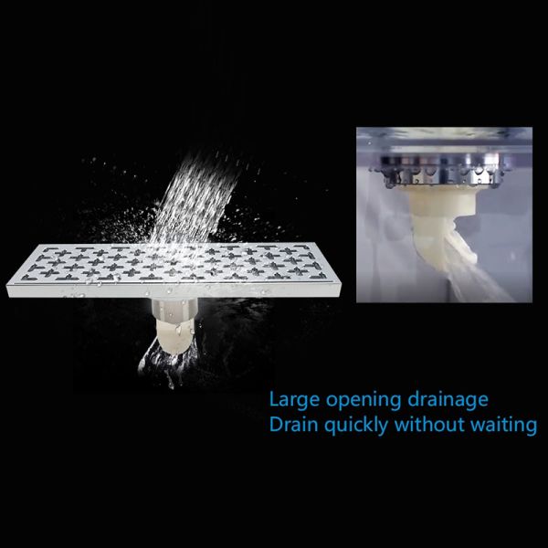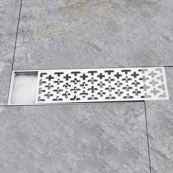 Прямоугольный трап для душа с вертикальным выпуском Gappo G83050, размер 10 * 30 см, цвет хром, изготовлен трап из нержавеющей стали.