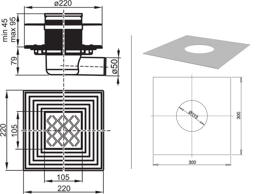 Подходит для душевых уголков, ванных комнат и технических помещений. Монтажная высота 104 мм. Нержавеющий фланец и гидроизоляция.