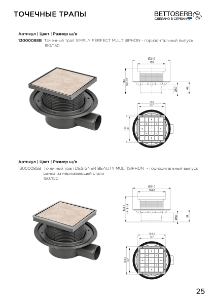 Трап Bettoserb 15x15 SIMPLY PERFECT MULTISIPHON Душевой трап с комбинированным затвором –... Подробнее
