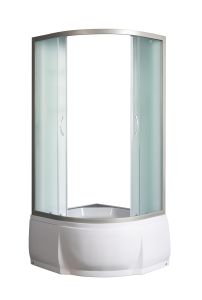 Типы и размеры:без поддона 80*80*153с поддоном 80*80*196Матовое стекло, профиль матовый хромДушевое ограждение для ванной комнаты полукруглое с боковым регулировочным профилем и саморегулирующимися металическами, хромированными, двойными роликами.