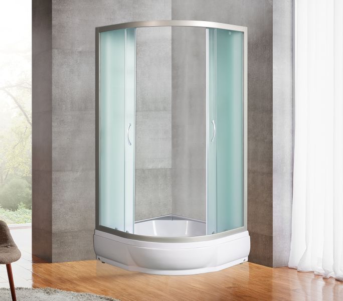 • Типы и размеры:без поддона 90*90*185с поддоном 90*90*211 Матовое стекло, профиль матовый хромДушевое ограждение для ванной комнаты полукруглое с боковым регулировочным профилем и саморегулирующимися металическами, хромированными, двойными роликами.