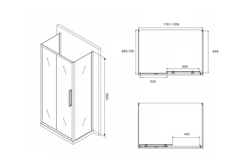 Душевой уголок ABBER Schwarzer Diamant 120x70см чёрный AG30120BH-S70B-S70B