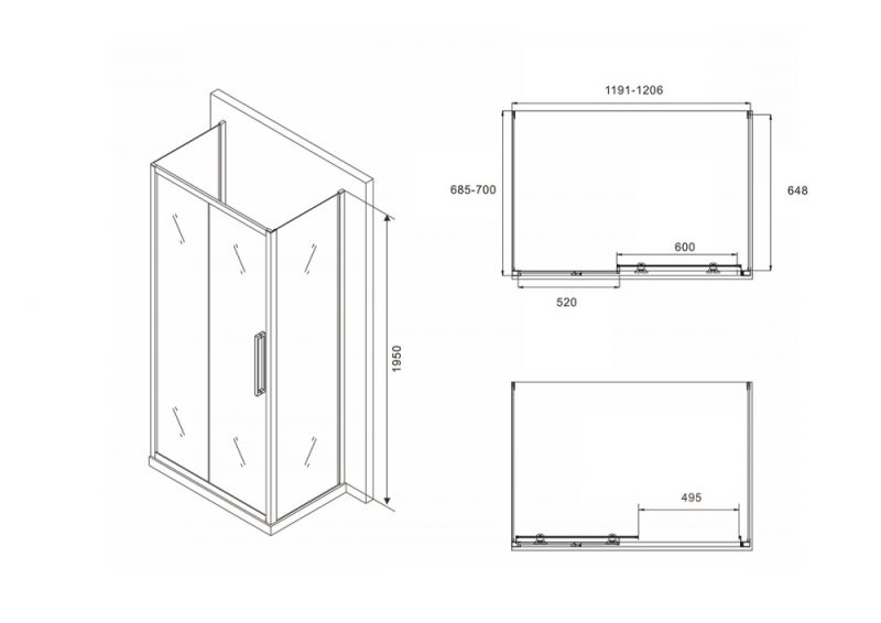 • Габариты с регулировками: (1191-1206)х(685-700) мм