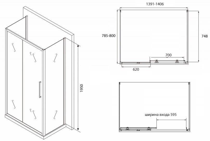 Душевой уголок ABBER Schwarzer Diamant 140x80см AG30140BH-S80B-S80B