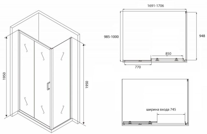 Душевой уголок ABBER Schwarzer Diamant 170x100см AG30170B-S100B