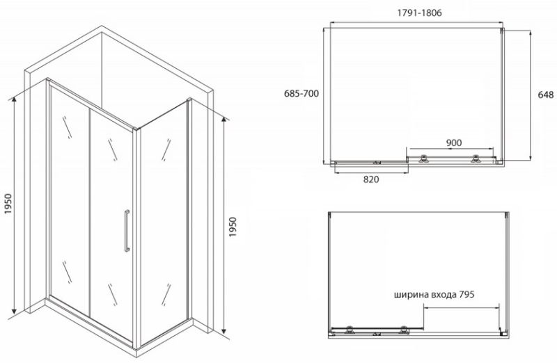Душевой уголок ABBER Schwarzer Diamant 180x70см AG30180BH-S70B
