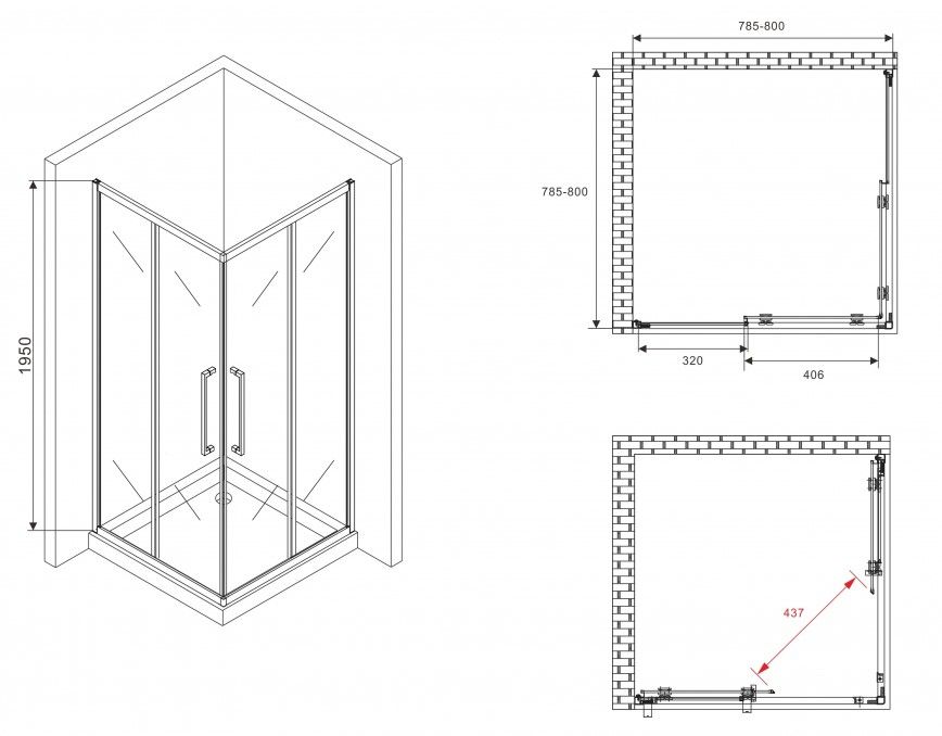 Душевой уголок ABBER Schwarzer Diamant AG02080BDTH 80x80см чёрный