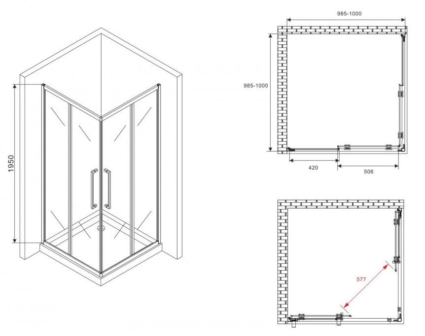 Душевой уголок ABBER Schwarzer Diamant AG02100BMH 100x100см чёрный