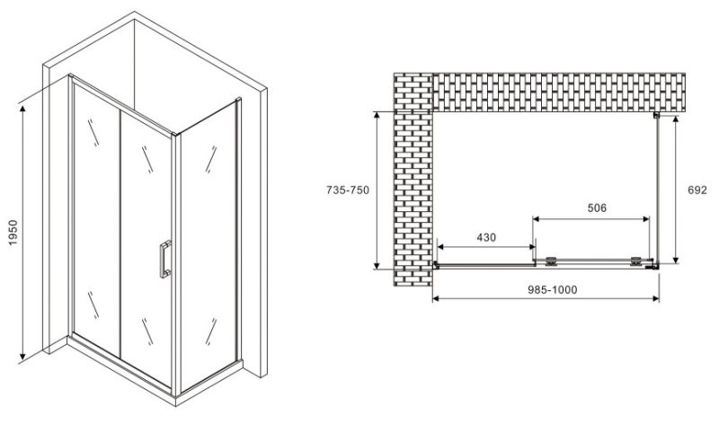 Душевой уголок ABBER Schwarzer Diamant AG30100B-S75B 100x75см чёрный