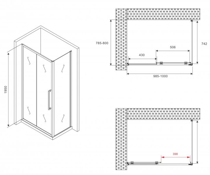 Душевой уголок ABBER Schwarzer Diamant AG30100BMH-S80BM 100x80см чёрный купить