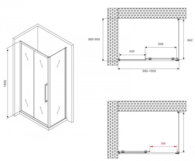Душевой уголок ABBER Schwarzer Diamant AG30100BMH-S90BM 100x90см чёрный купить