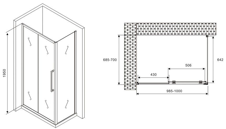 Душевой уголок ABBER Schwarzer Diamant AG30100MH-S70M 100x70см хром