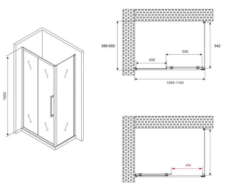 Душевой уголок ABBER Schwarzer Diamant AG30110H-S60 110x60см хром