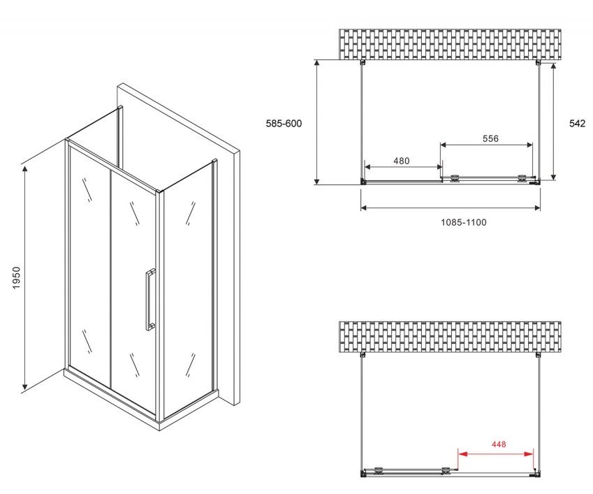 Душевой уголок ABBER Schwarzer Diamant AG30110MH-S60M-S60M 110x60см хром