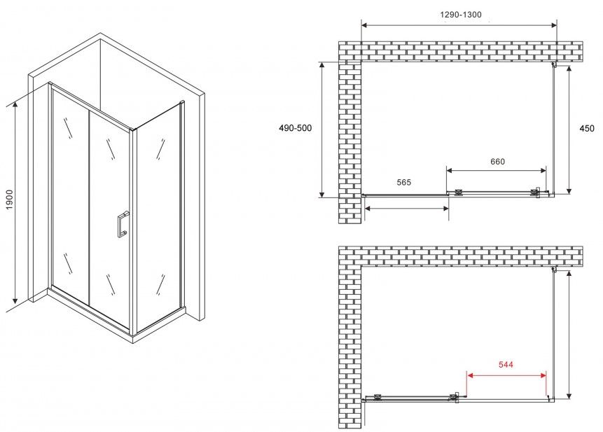 Душевой уголок ABBER Schwarzer Diamant AG301305-S505 130x50см хром