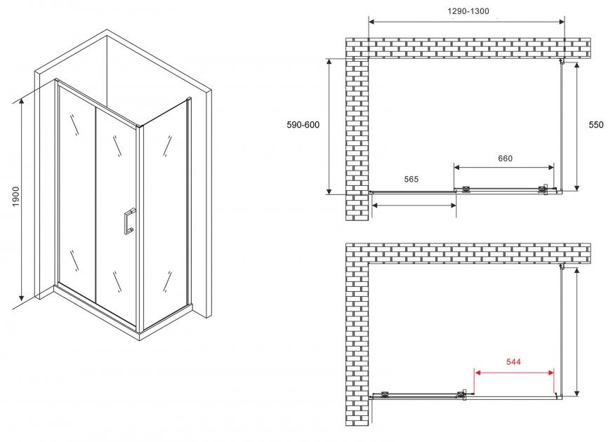 Душевой уголок ABBER Schwarzer Diamant AG30130B5-S60B5 130x60см чёрный