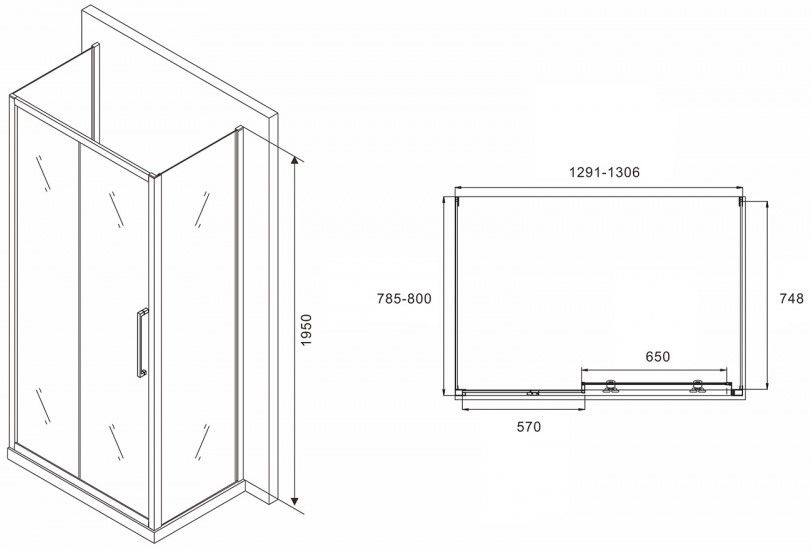 Душевой уголок ABBER Schwarzer Diamant AG30130H-S80-S80 130x80см хром