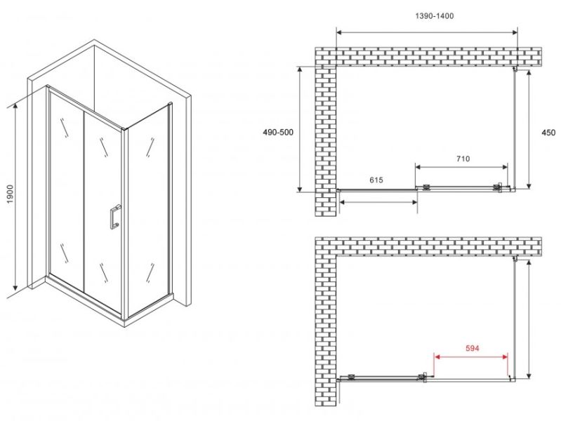 Душевой уголок ABBER Schwarzer Diamant AG301405-S505 140x50см хром