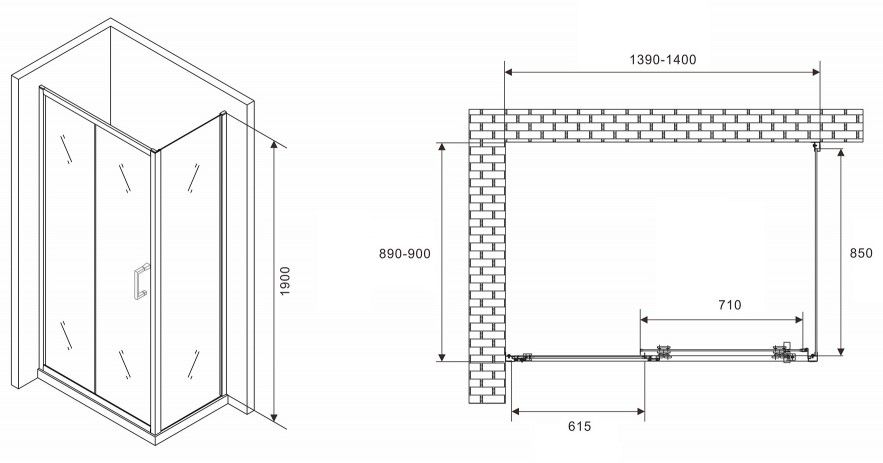Душевой уголок ABBER Schwarzer Diamant AG301405-S905 140x90см хром