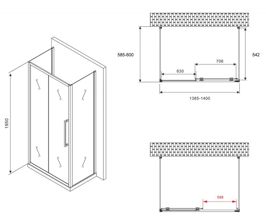 Душевой уголок ABBER Schwarzer Diamant AG30140BH-S60B-S60B 140x60см чёрный