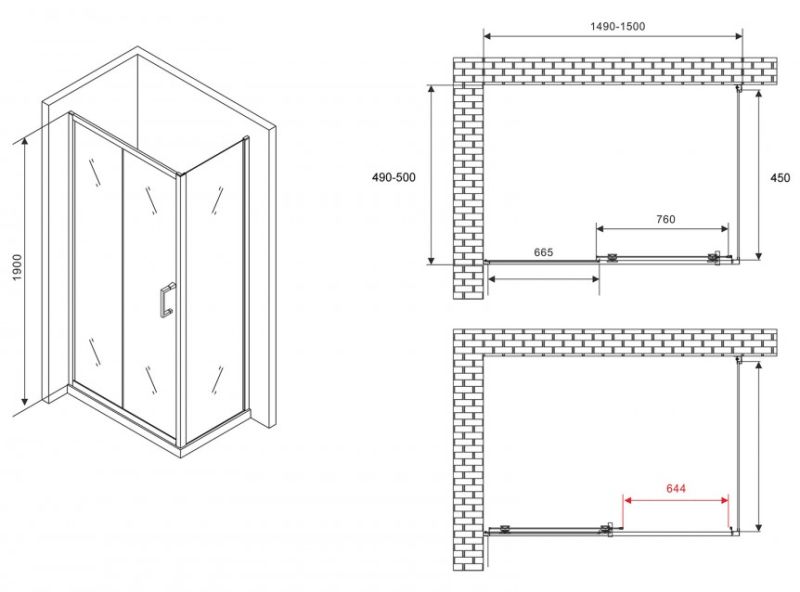 Душевой уголок ABBER Schwarzer Diamant AG301505-S505 150x50см хром
