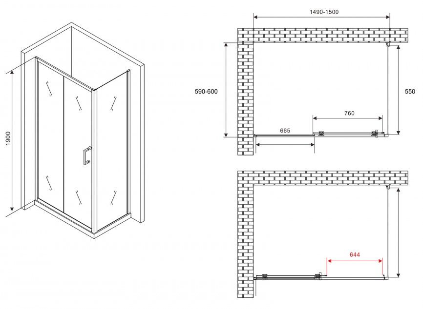 Душевой уголок ABBER Schwarzer Diamant AG30150B5-S60B5 150x60см чёрный