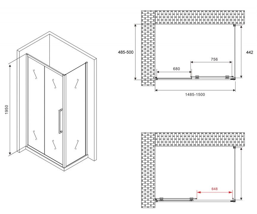 Душевой уголок ABBER Schwarzer Diamant AG30150H-S50 150x50см хром