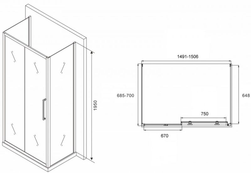 Душевой уголок ABBER Schwarzer Diamant AG30150MH-S70M-S70M 150x70см хром