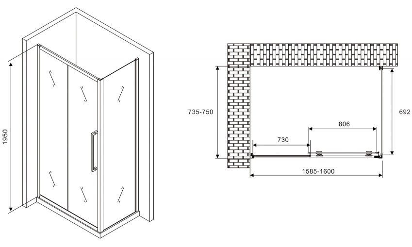 Душевой уголок ABBER Schwarzer Diamant AG30160BH-S75B 160x75см чёрный