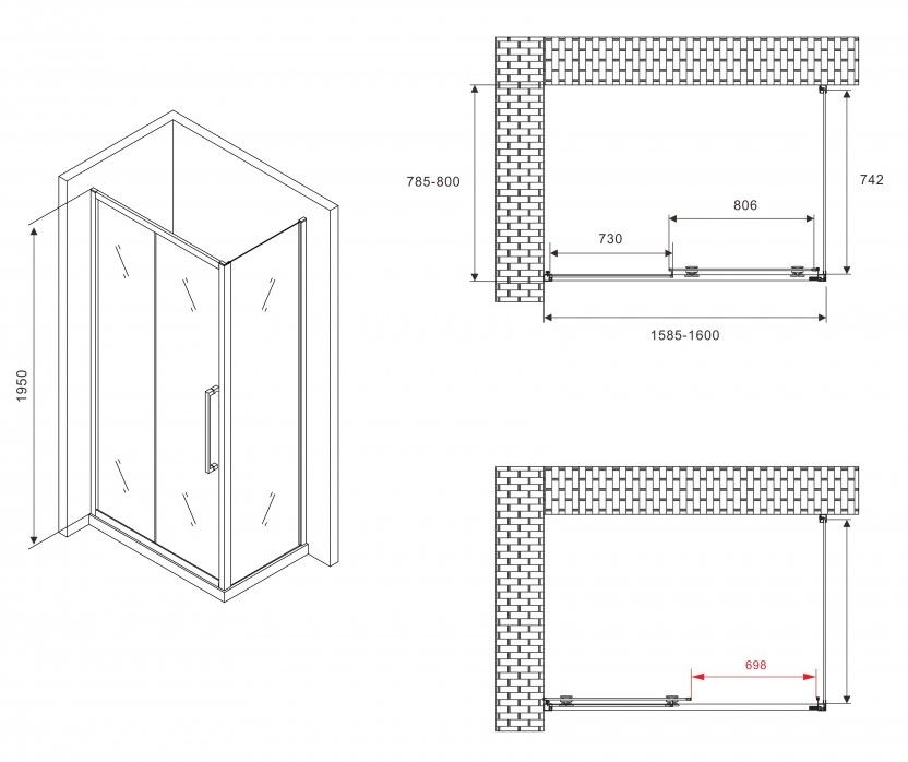 Душевой уголок ABBER Schwarzer Diamant AG30160BMH-S80BM 160x80см чёрный