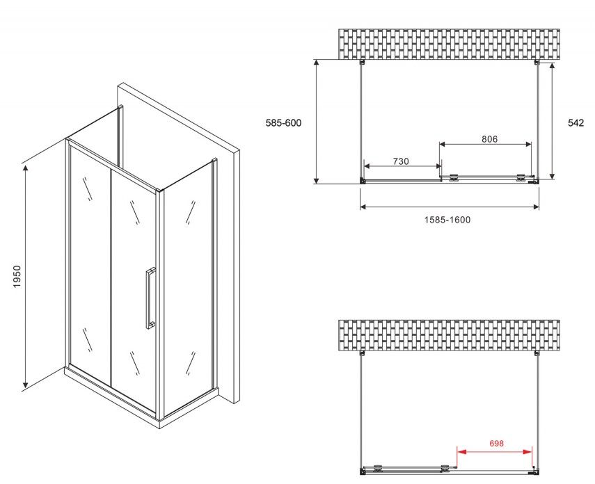 Душевой уголок ABBER Schwarzer Diamant AG30160MH-S60M-S60M 160x60см хром