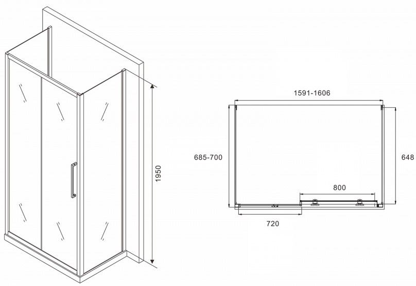 Душевой уголок ABBER Schwarzer Diamant AG30160MH-S70M-S70M 160x70см хром