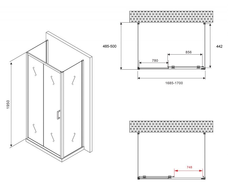Душевой уголок ABBER Schwarzer Diamant AG30170B-S50B-S50B 170x50см чёрный купить
