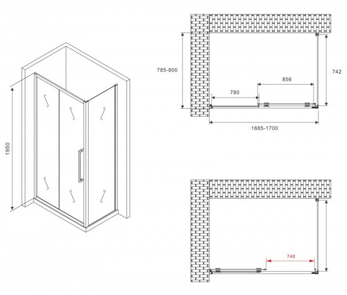 Душевой уголок ABBER Schwarzer Diamant AG30170BMH-S80BM 170x80см чёрный купить