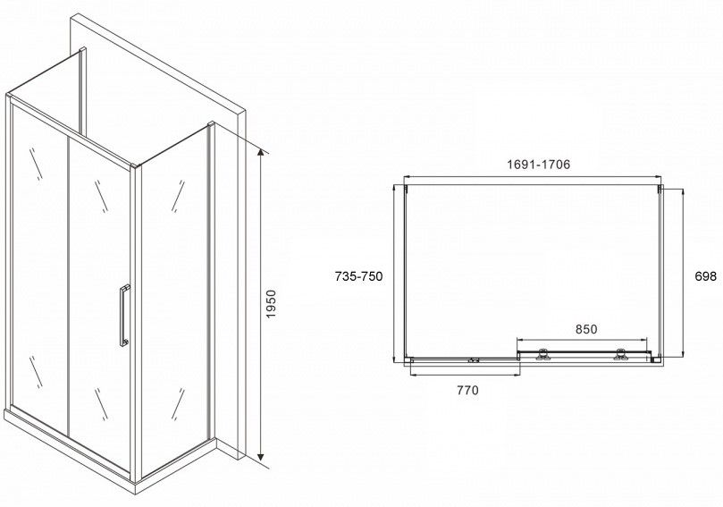 Душевой уголок ABBER Schwarzer Diamant AG30170H-S75-S75 170x75см хром купить