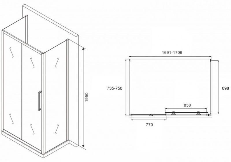 Душевой уголок ABBER Schwarzer Diamant AG30170H-S75-S75 170x75см хром