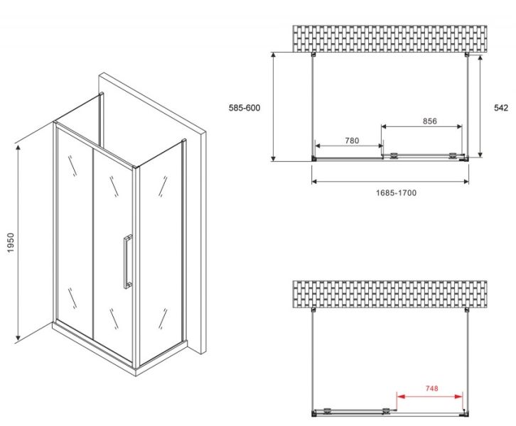 Душевой уголок ABBER Schwarzer Diamant AG30170MH-S60M-S60M 170x60см хром