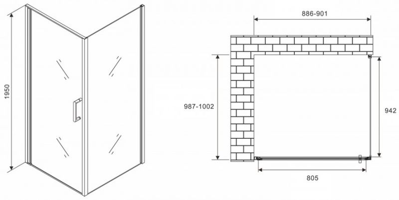 Душевой уголок ABBER Sonnenstrand AG04090M-S100M 100x90см хром
