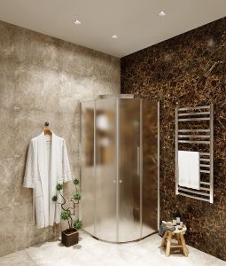Организовать душевую зону стало легко благодаря душевому уголку Agger A01-090MCR/G. Монтаж возможен как на поддон (арт.A01-090TCR/T - приобретается дополнительно), так и напольный. Размер уголка подойдет для большинства небольших ванных комнат и составляет 90х90х185 см при стандартной форме "четверть круга". Раздвижные дверцы (стекла матовые закаленные толщиной 4 мм) закреплены при помощи профиля из алюминия с покрытием хром. Двойные ролики, обеспечивающие подвижность створок. Дверки оснащены силиконовыми уплотнителями с магнитной? лентой. Ширина уголка регулируется на несколько сантиметров. Ширина входа - 60 см.