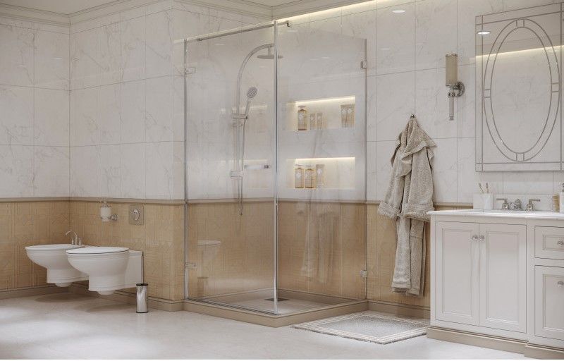 «Утопленные» в стекло петли с внутренней стороны ограждения значительно облегчают уход за душевым уголком.