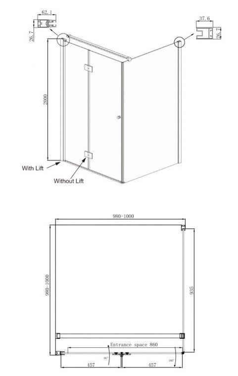 - Ширина входа: распашная часть 45.7 см, складная часть 86 см