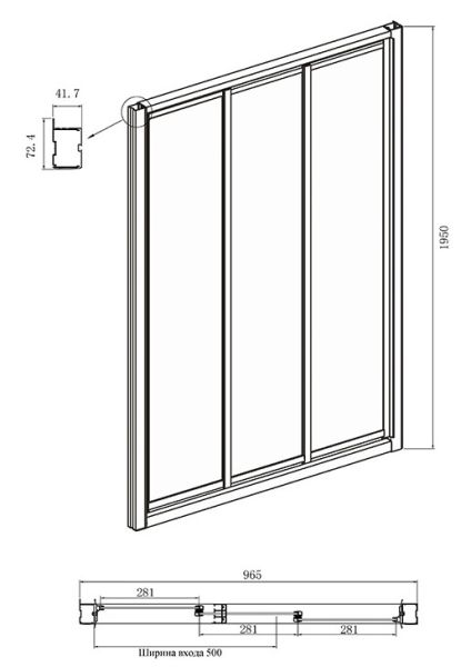 - Ширина входа: 50 см