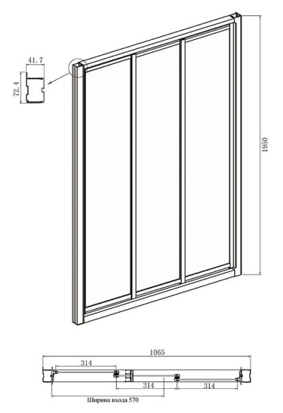 • Конструкция дверей: раздвижная
