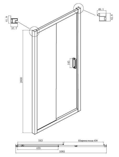 • Конструкция дверей: раздвижная